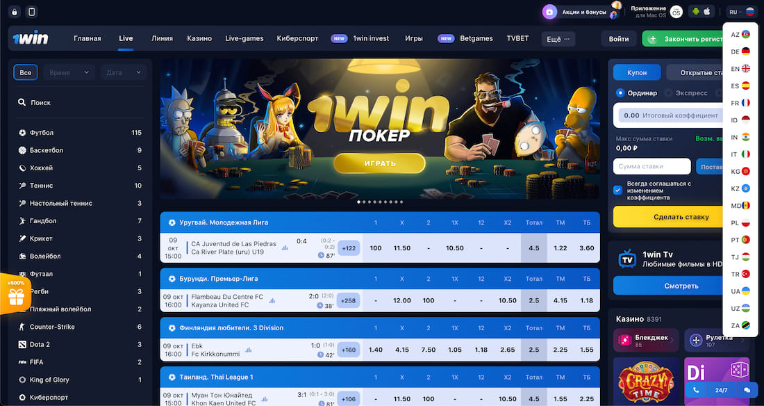 Воспользоваться возможностями букмекерской конторы 1win может любой пользователь старше 18 лет. Чтобы играть в онлайн автоматы или делать ставки на спорт потребуется зарегистрироваться. Эта процедура максимально простая и интуитивно понятная. На главной странице сайта можно сменить язык интерфейса. Что позволит еще быстрей разобраться во всех нюансах.